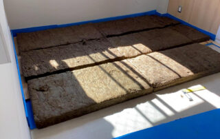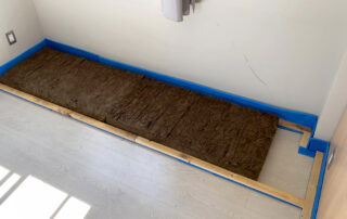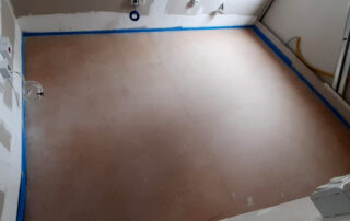Se houve piso laminado instalado, este deverá ser retirado. A manta acústica é colocada diretamente no chão bem como o vinílico sobre a manta.